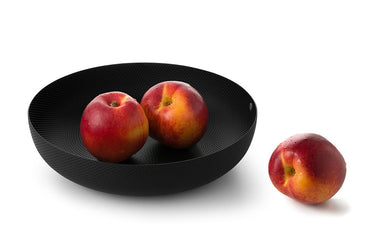 Round basket in steel coloured with epoxy resin, black with relief decoration. Designer Jasper Morrison C. Category Baskets and Fruit bowls Collect...