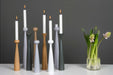 The models, Lily, Tulip and Rose, are different in size and shape, but group to form a family. They can also be combined with other candlesticks. There is a multitude of colours ranging from pastels to bright colours. Alternatives are untreated oak or oiled oak