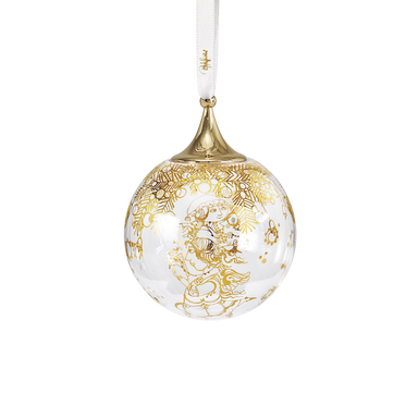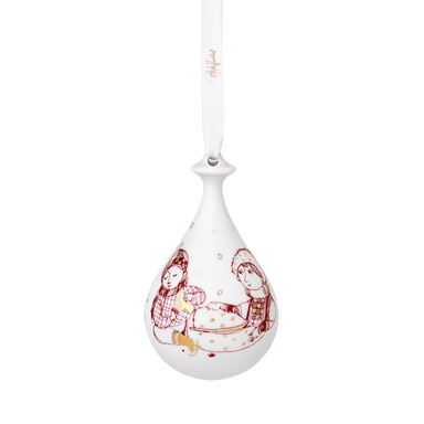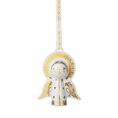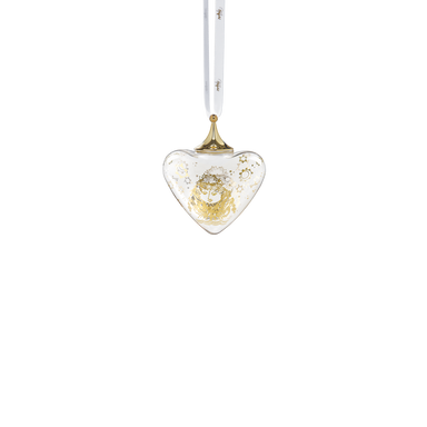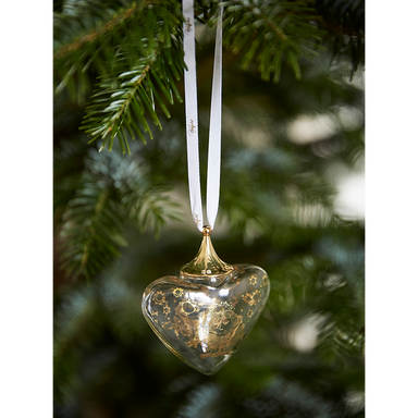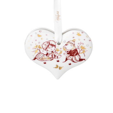 The fairytale Christmas heart of Bjorn Wiinblad is made of hand-blown glass, decorated with a smiling Christmas angel in the artist's signature lin...