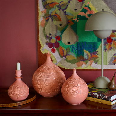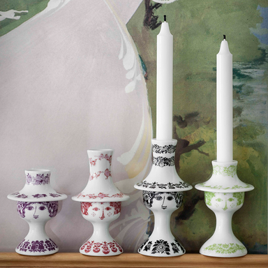 Meet spring with delicate, bright green shades and whimsical patterns. The red-cheeked candlestick is a reinterpretation of Wiinblad's original can...