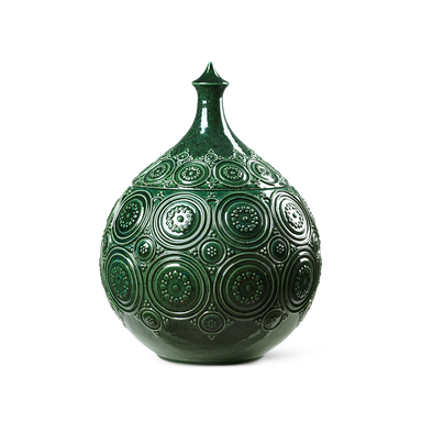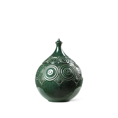 Extremely beautiful Bjørn Wiinblad dark green Symphony Magic Jar. This jar with its chubby body and narrow neck is a perfect, beautifully simple or...