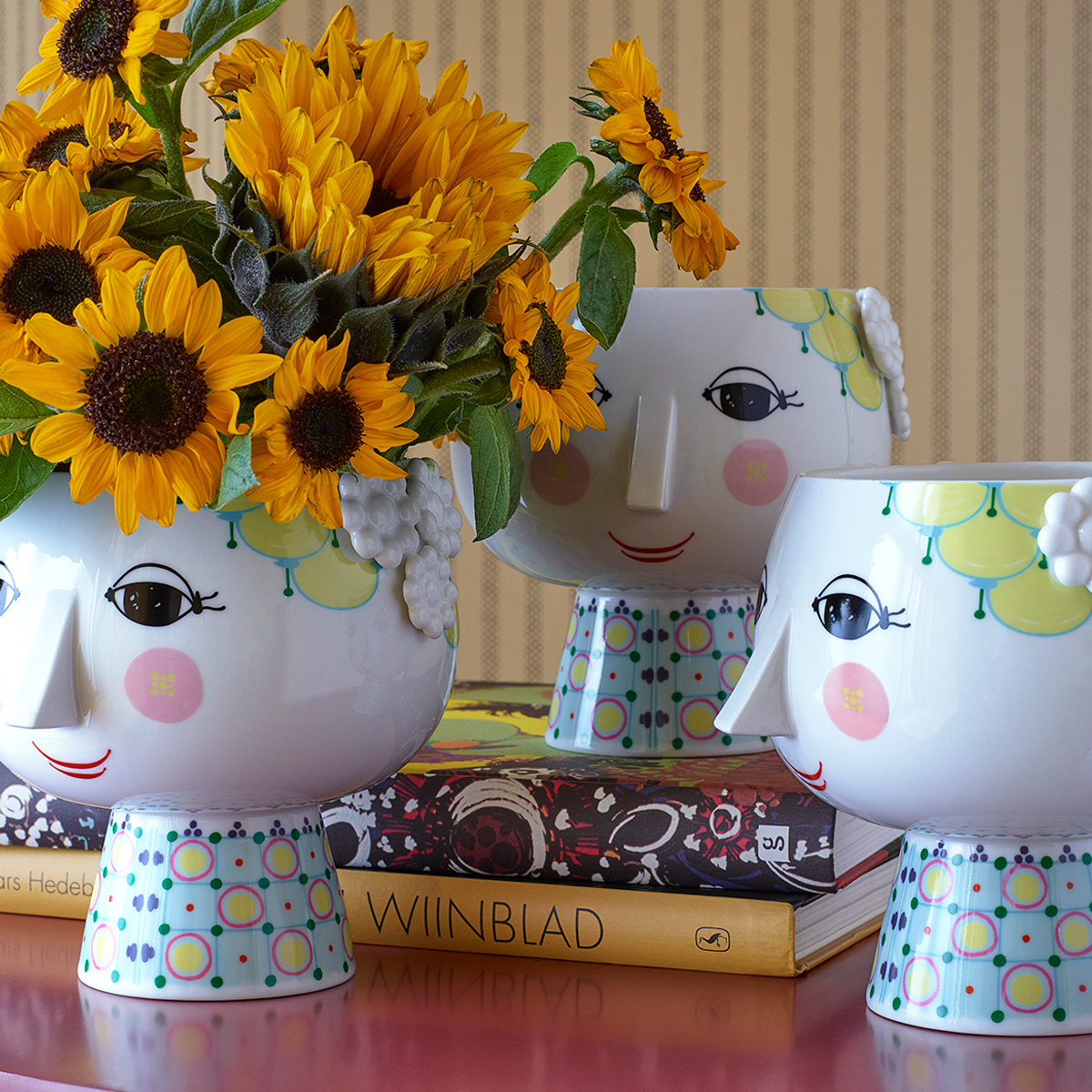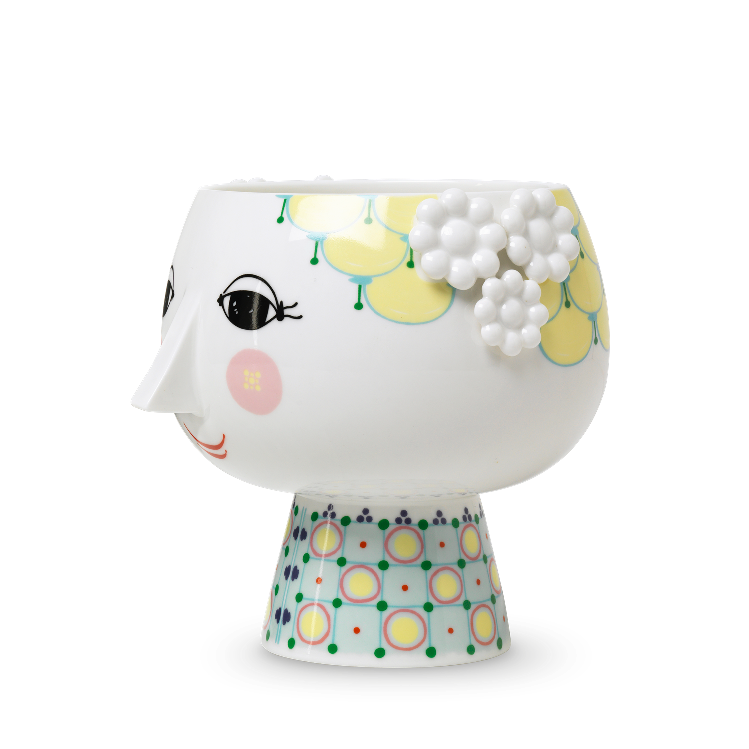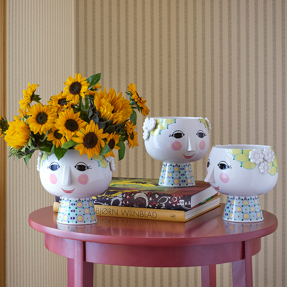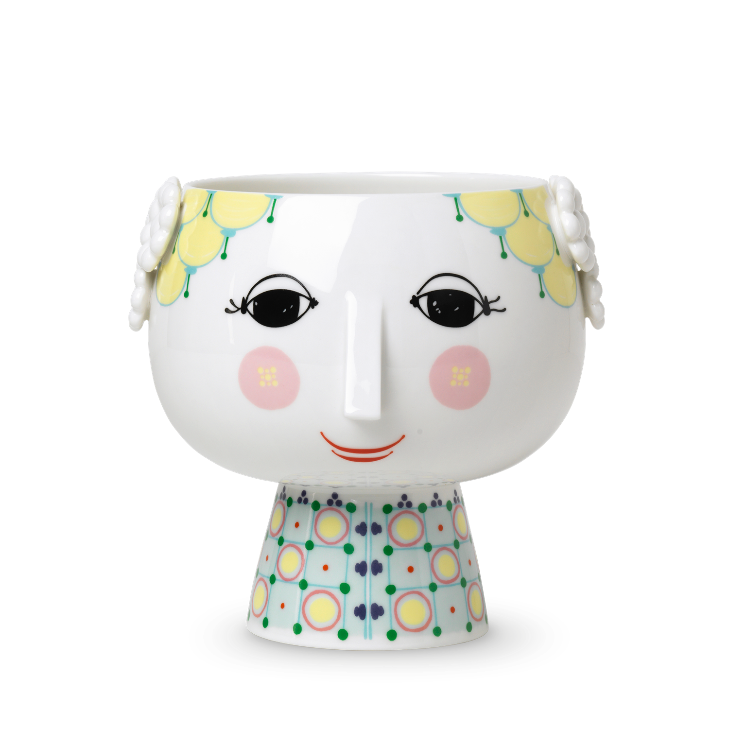 This version of Bjørn Wiinblad's famous plant pot depicts Eve, on a beautifully decorated base. It will add a touch of retro cool to your home with its elegant neck and the charming female face motif. You can use this plant pot with base for everything from herbs to heather, white Christmas roses and trendy cacti to highlight the 1970s nostalgia, which once again is a major feature of today's interior trends.
