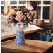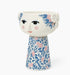 Bjørn Wiinblad embodies everything quirky, whimsical, creative, and wonderful. With the charming and smiling Eva vase from Bjørn Wiinblad, featuring a romantic botanical print in blue and pink with roses and leaves on both the dress and hair, and sweet black bows on the neck, you can bring whimsy into full bloom throughout your home. The vase stands 7.3" tall with a diameter of 4.9" and is made of glossy glazed ceramic. The face, with almond-shaped eyes and a pointed nose, is based on Wiinblad's original design, while the colorful dress pattern is a reinterpretation of Bjørn Wiinblad's illustrations from his archives. The shape is inspired by Wiinblad's original and iconic Eva figure, known for its broad head and conical body.
