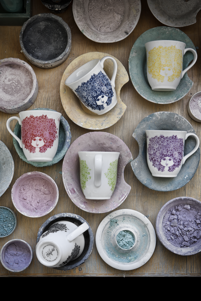 Hold Bjørn Wiinblad’s fairy-tale world in your hands. The mugs are decorated with a hand-applied print of a finely detailed woman’s face. The blue motif is just one of six colours that you can mix and match to your heart’s content with this new collection that re-interprets Bjørn Wiinblad’s joyous decorations.
