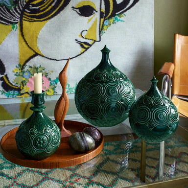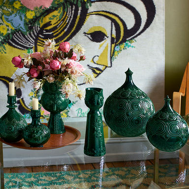 Beautiful Symphony Ophelia candlestick in dark green. The candlestick is 14.5-cm high and will look lovely in any home. The candlestick is made of ...