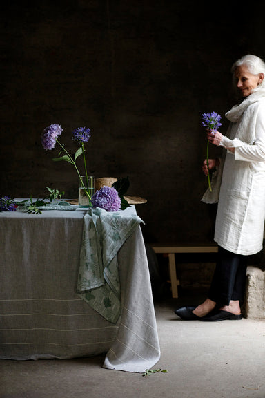 TULPPAANI Masterpiece of jacquard weaving! Multiuse towel made of washed linen.Designer: Helmi Liikanen Made in: Finland Material: 100% washed linen