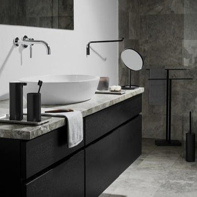 Elegant luxury with a dark soul: The MODO toilet brush, made of titanium-coated stainless steel, transforms your bathroom into a wellness temple. T...
