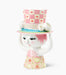 Invite a true Lady into your home and let her fill it with cheerful vibes through her vibrant colors, quirky details, and hand-painted decorations. The vase is hand-decorated from top to bottom with intricate motifs inspired by Wiinblad’s rich archive. The base features the iconic face with almond-shaped eyes, a triangular nose, rosy cheeks, and a playful smile. With her sculptural arms, the hand-painted Lady holds her grand hat, adorned with charming ceramic tulips on each side.