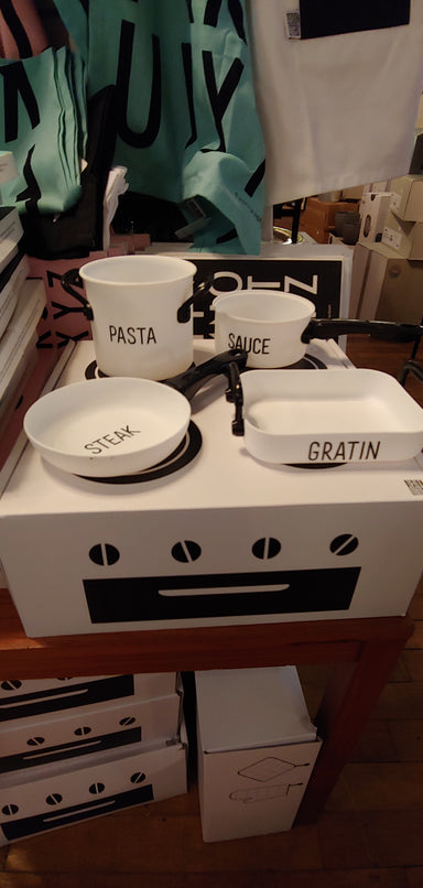 The cook set gift box set BOX NOT PERFECT Super cool and playful cooking class set with five pieces; large pot with lid, sauce pan, frying pan and ...