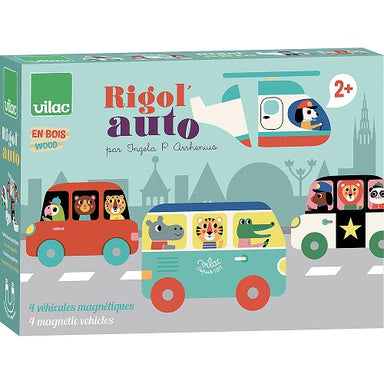 VILAC Wooden magnetic cars with artwork by Ingela P. Arrhenius. Includes 12 magnetic pieces to make multiple combinations. Box measures approximate...