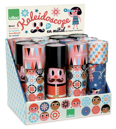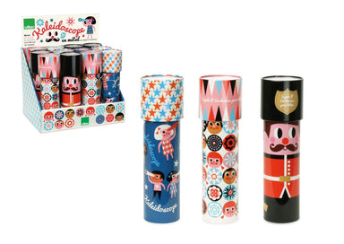 Single metal Kaleidoscope featuring artwork of Ingela P Arrhenius. Each kaleidoscope measures 5.5 x 18 x 5.5 cm. Safety rated for ages 3+.