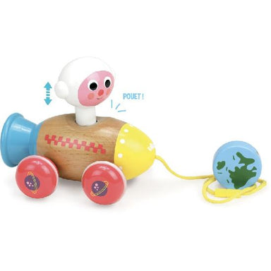 Wooden Pop-Up Bus featuring art of Ingela P. Arrhenius by VILAC. Measures approx: 14.5 x 10.5 x 3 cm. Giftbox measures approx: 13 x 17 x 4.5 cm. Sa...