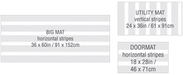 Please note that stripes run parallel to the long side on doormats and big mats, and parallel to the short side on the utility mats and runners.