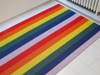 Energized by colorful stripes, this easy-care mat is inspired by the rainbow of LGBTQ identities. We are a proud supporter of The Trevor Project, t...