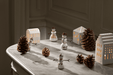 Christmas and handicraft traditions in beautiful harmony. With the family of snowmen from Kähler’s Hammershøi Christmas series, it's easy to bring some authentic yuletide spirit into your home with broad smiles and cosy Christmas motifs that match the rest of the series and complete your festive mood: all while you enjoy the nostalgia of Kähler’s handmade design traditions. Naturally, the snowwife wears a top hat, typical of the classic snowman. With a height of 11 cm and a diameter of 6 cm, she is shaped using soft lines, complete with the Hammershøi series’ iconic grooves that are characteristic of Hans-Christian Bauer’s dinnerware and table decorations. This model is the standing version of the Snowwife, but you can also get a hanging version. The choice is yours. Create your own snowy landscape in the window, on the shelf or on the Christmas table. You could also let the entire family decorate the Christmas tree or some pretty branches in a beautiful vase. Both the free-standing and hanging snowman family come with small painted wooden arms that can be taken on and off, but why not take a walk in the garden, park or forest and find your own small branches to use as arms? Perhaps it could be your new cosy Christmas tradition to do on 1 December? This makes the snowmen even more personal and meaningful. Kähler’s snowman family consists of the Snowman, Snowwife, Snowboy and Snowgirl, all decorated in different ways using motifs from the Hammershøi Christmas series, painted in watercolour by Rikke Jacobsen and transferred to the snow-white porcelain. The motifs are classic Christmas symbols such as woven Christmas hearts, pine cones and gifts in an authentic, cosy and hand-painted style, guaranteed to get you into the Christmas spirit.