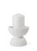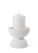 Elegant shapes, edge and plenty of attitude. With this Tura candle holder for block candles, you get simple, stylish and decorative sculptural art as we know it from Lyngby Porcelæn, where archive design, classic shapes, patterns and pure aesthetics come together perfectly. The candleholder measures 10 cm in height and is designed so that it almost draws the light into the top hemisphere. The iconic Lyngby grooves follow the distinctive shapes of the candlestick, creating a modern look in the contrast between the stringent and the soft. And the detail with the hemispheres that meet in a narrow band also gives the candlestick a lightness that fits perfectly into a modern interior. With its voluminous design and personality, the Tura candle holder is certain to steal all the attention in the room and is almost a sculpture in itself.