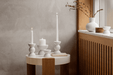Elegant shapes, edge and plenty of attitude. With this Tura candlestick for tapered candles, you get simple, stylish and decorative sculptural art as we know it from Lyngby Porcelæn, where archive design, classic shapes, patterns and pure aesthetics come together perfectly. The candlestick measures 14 cm in height and is designed with two narrow bands that lift the candlestick and give it a hemispherical centre. The iconic Lyngby grooves follow the distinctive shapes of the candlestick, creating a modern look in the contrast between the stringent and the soft. And the detail with the hemispheres that meet in a narrow band also gives the candlestick a lightness that fits perfectly into a modern interior. With its voluminous design and personality, the Tura candlestick is certain to steal all the attention in the room and is almost a sculpture in itself.