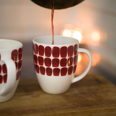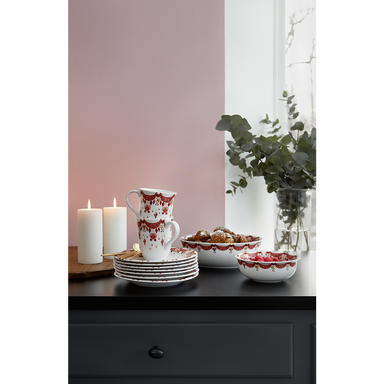 The Unikko motif in red and white covers this white mug. The mug is made of dishwasher, oven, microwave and freezer proof white stoneware.Marimekko...