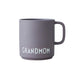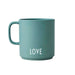 L:8,3 x H: 8,3 x W: 8,2 cm. Can contain 175 ml. Matt glazed fine bone china, laser engraved letters. Typography: Arne Jacobsen's Vintage ABC. Care instructions: Dishwasher safe.