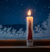 The advent calendar candle has the image of a gnome with a red hat and the numbers 1 to 24 in the color white.