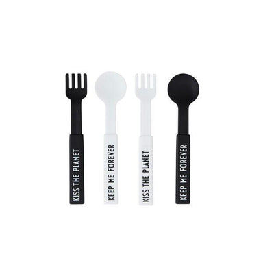Drop-safe and reusable cutlery for your lunch on-the-go. Incl. two sets of drop-safe fork and spoon. One set in white and one set in black. The cut...