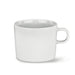 Mocha cup in white porcelain.“PlateBowlCup” bone china tableware and “Glass Family” glasses take their place alongside the “KnifeForkSpoon” cutlery (2005), thus forming the first complete Alessi tableware collection “entry level” in our catalogues. It gives me great pleasure to use the term “entry level”, which I consider a kind of title of ‘merit’. It is true that the price of these household objects is highly accessible, but this has not compromised the quality of design. We feel that this design neatly expresses the contribution that “A di Alessi” has made to truly democratic design. Jasper has said: “I like the idea of a democratic wine glass which is slightly more formal than the others, to be used to give the table an easy aspect of a 'dinner' rather than just dinner”. I would like to add that his quest for anti-glamour “normality” paradoxically gives his designs an air of sophisticated simplicity, which is a good description of one of the ambitions of the “A di Alessi” brand (Alberto Alessi)