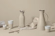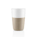The Cafè Latte tumblers hold 36 cl, which corresponds exactly to the volume of coffee, including foamed milk, dispensed by the standard settings on the many popular coffee capsule machines. The tumblers are made of porcelain with a silicone sleeve for non-slip grip.