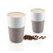 The café latte tumbler from Eva Solo holds 360 ml of coffee with a frothy milk topping, which corresponds exactly to the standard settings on many of the popular pod coffee machines. The tumbler is made of porcelain with a silicone sheath, which ensures a good grip.