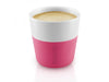 Eva Solo’s espresso tumbler holds 80 ml of coffee, which corresponds exactly to the standard settings on many of the popular pod coffee machines. The tumbler is made of porcelain with a silicone sheath, which ensures a good grip.