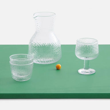 The Sukat Makkaralla pitcher is made of clear mouth blown glass. The Sukat Makkaralla (Socks Rolled Down) series is designed by Anu Penttinen to br...