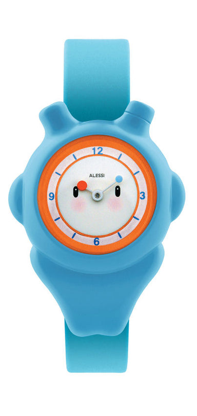 Wrist watch in polyurethane, blue. Description The wrist watch Space-bimba was designed by Miriam Mirri. She has conceived “Space Bimba” as an app...