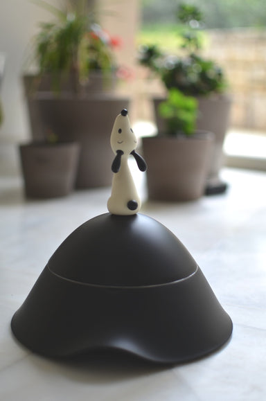 DOG BOWL. BLACK. LULÀ Dog bowl with lid in thermoplastic resin and 18/10 stainless steel mirror polished, black.p> Diameter (cm): 22.70 Height...
