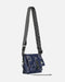 The Unikko pattern Mini Messenger shoulder bag is made of recycled jacquard knit polyester. The bag has one open pocket and a larger open compartment under the front flap. The adjustable shoulder strap has the jacquard knit Unikko pattern. The bag features the Marimekko keychain and leather details.