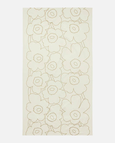 This unbleached cotton sateen tablecloth features the golden Piirto Unikko pattern, which is printed with metal pigment in Helsinki. The edges of t...