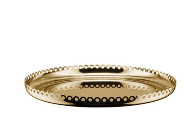 Tray with perforated edge. 18/10 stainless steel sheet with brass PVD coating. Caratteristiche (da tradurre) C. CategoryBaskets, Trays and Centr...