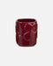 The cup is made of ceramic with a burgundy glaze. The colored glaze may give the item a lively color.