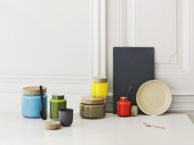 DescriptionThe yellow, mouth-blown Palet Storage Jar with its oak lid adds a touch of sunshine to your living spaces all year round. Its retro acce...
