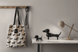 Grab the black handle and take your love of original and iconic Danish design with you everywhere. This exclusive Kay Bojesen tote bag in black/white measuring 40x45 cm in 100% organic cotton provides you with the perfect companion for your new wooden design icon or any other of your favourite things. The tote bag was created exclusively for rosendahl.com, where it is being sold to celebrate the fact that Kay Bojesen’s Dog Pind has been a timeless classic and faithful friend for 90 years. That’s why it features a series of beautiful prints with the anniversary dog in the starring role, which you can look forward to showing off when you take it on shopping trips around town. With its modern and minimalistic expression, it's hard to tell that the original design dates back to 1934 – yet more proof that Kay Bojesen, like no other, managed to create original stories in wood and design iconic designs that we never tire of looking at.