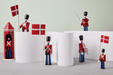 The popular guardsman by Kay Bojesen has a new flag! The guardsman previously carried a paper flag, but now he has a lovely cotton textile flag, which is a more robust, longer-term solution. Kay Bojesen first sketched the standard bearer in 1942, and this impressive painted beech standard bearer comes with a cardboard sentry box bearing the monogram by permission of Her Majesty the Queen of Denmark. Be careful when placing the flag. Carefully roll the flagpole into the guardsman’s hand using both hands.