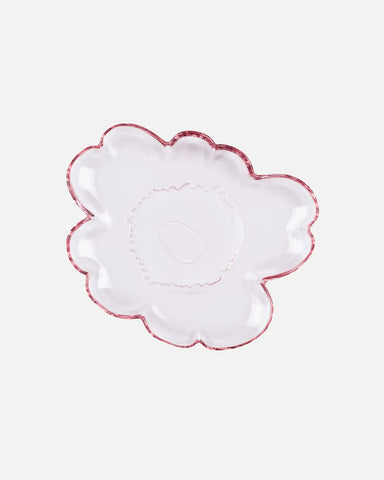 This small glass plate is made in the shape of the Unikko flower. We recommend washing the plate by hand.This product is made of pink glass.The pro...