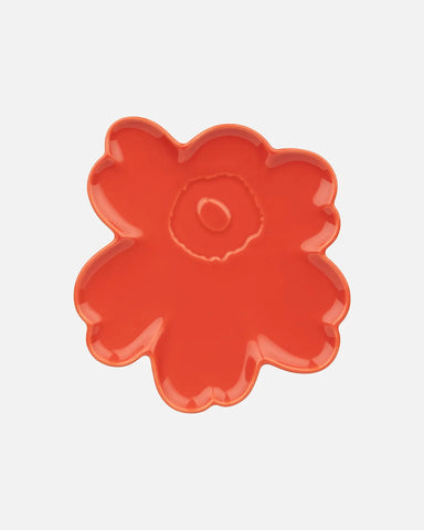 This plate is made in the shape of the Unikko flower. We recommend washing the plate by hand.This product is made of ceramic with an orange red gla...