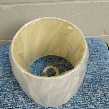 Cocoon-like plastic coating sprayed over round stainless steel wire frame with plated nickel canopy available in three sizes. Off-white/Nickel Diam...