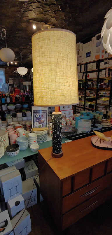 Table light made of white glazed ceramic with black pattern. Limited and numbered edition of 99 ex.Size: H 30 cm, ø 18 cm.In stock. No longer in pr...