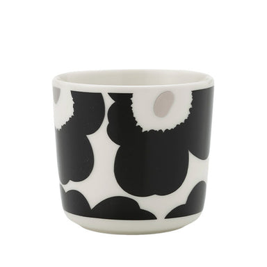 ONE Oiva cup without handle. The cups are made of white stoneware and they feature the Unikko pattern with silver metal pigment details. Because of...
