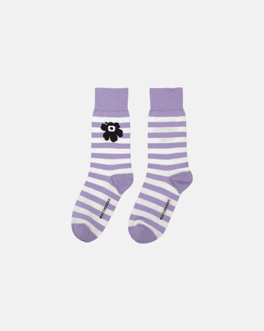 The Kasvaa ankle socks are made of a cotton blend and they feature the Tasaraita (even stripe) pattern with the poppy flower of the classic Unikko...