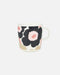 The Oiva mug with Unikko pattern is made of white stoneware that is dishwasher, oven, microwave and freezer proof.