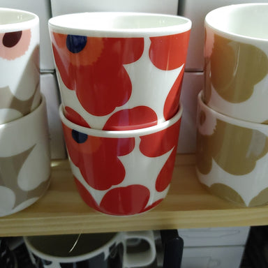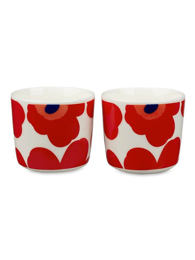 This set features two coffee cups without handles. The cups have the white and red Unikko pattern and they are made of dishwasher, oven, microwave ...