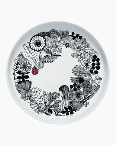 The Siirtolapuutarha (city garden) pattern on this Oiva deep plate tells a journey from the bustling city centre to a community garden full of flow...