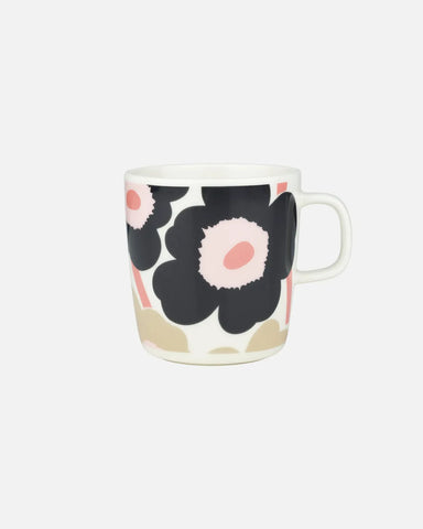 The Oiva mug features the Unikko (poppy) pattern in white and beige. It is made of white stoneware that is dishwasher, oven, microwave and freezer ...