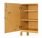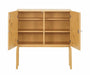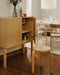 At first glance, the Cabinet 250 Celebration displays a simple exterior with a birch veneer corpus on solid birch legs in a honey stain finish. When opened, however, the cabinet reveals an enchanting element of surprise: Some unexpected guests joyfully appear in the form of Tove Jansson`s Moomin characters, who are illustrated all over the corpus interior in her nostalgic pen-drawn style.